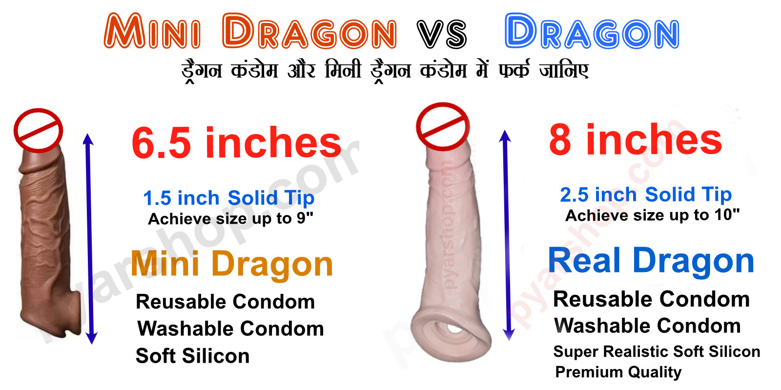 मिनी ड्रैगन कॉन्डम वो छोटा वर्जन है जो खास 3.5 से 4.5 इंच साइज़ वाले लड़कों के लिए बनाया गया है। ये अच्छी क्वालिटी के सिलिकॉन से बना है, जिसे तुम बार-बार इस्तेमाल कर सकते हो। ।